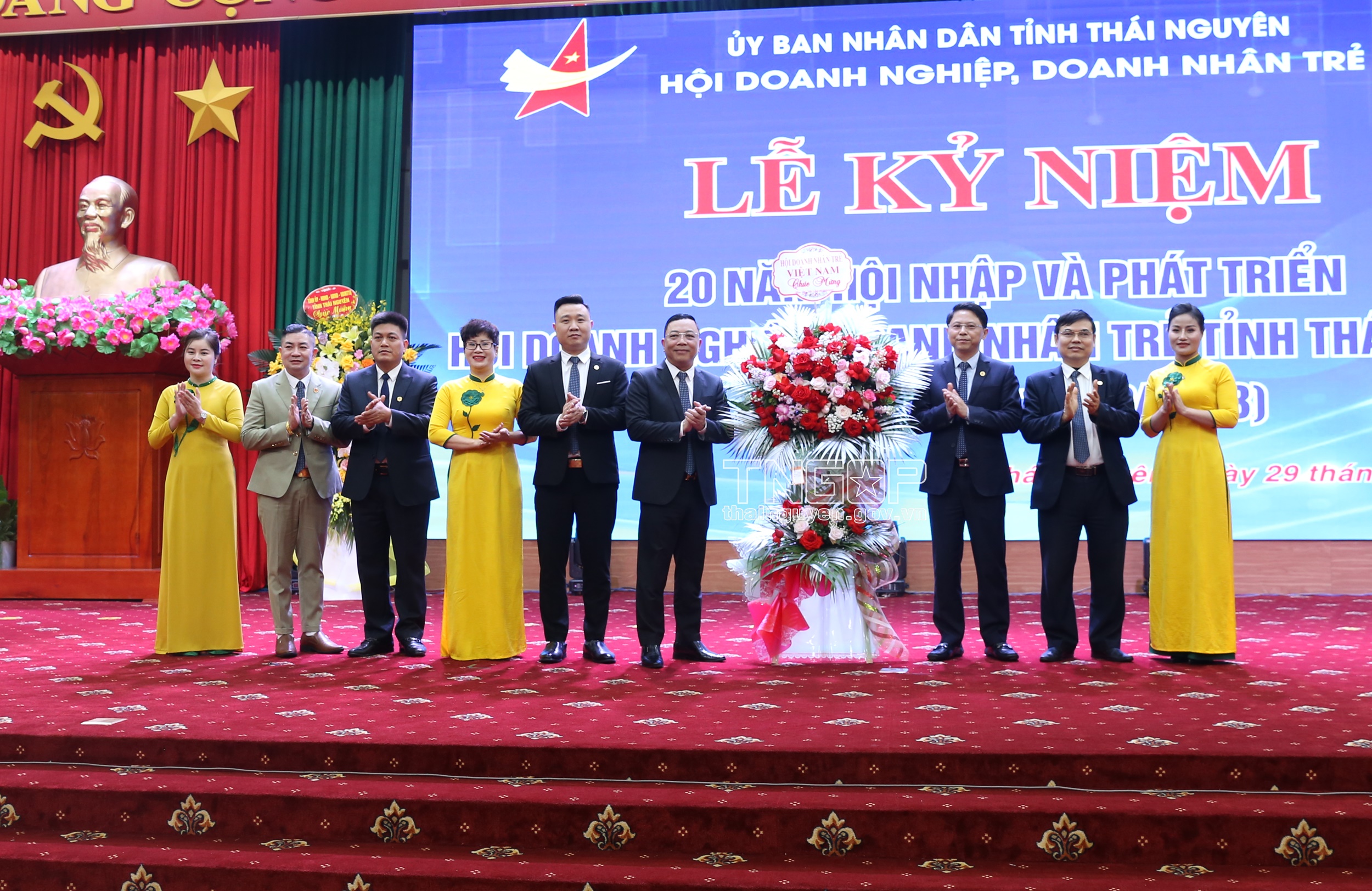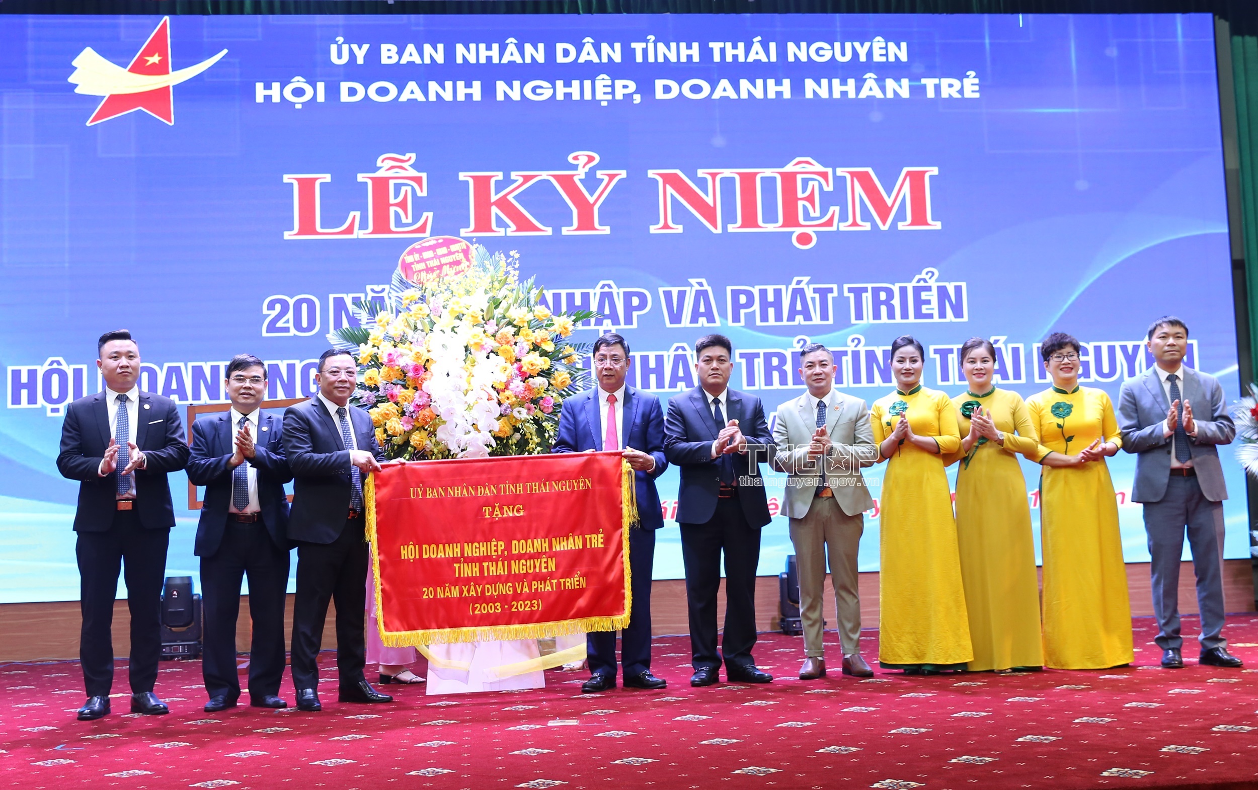 Lãnh đạo Hội Doanh nhân trẻ Việt Nam tặng hoa chúc mừng Hội Doanh nghiệp, Doanh nhân trẻ tỉnh Thái Nguyên 20 năm hội nhập và phát triển